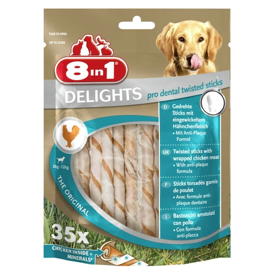 - Lieferumfang: 1 x 8in1 Delights Pro Dental Twisted Sticks 35 Stück
