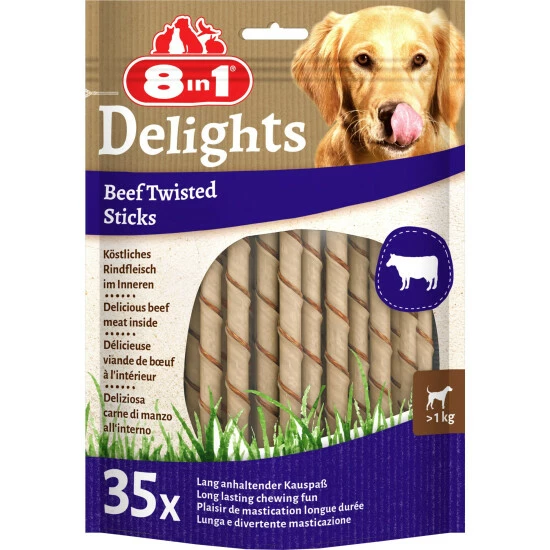 - Lieferumfang: 1 x 8in1 Delights Beef Twisted Sticks 35 Stück