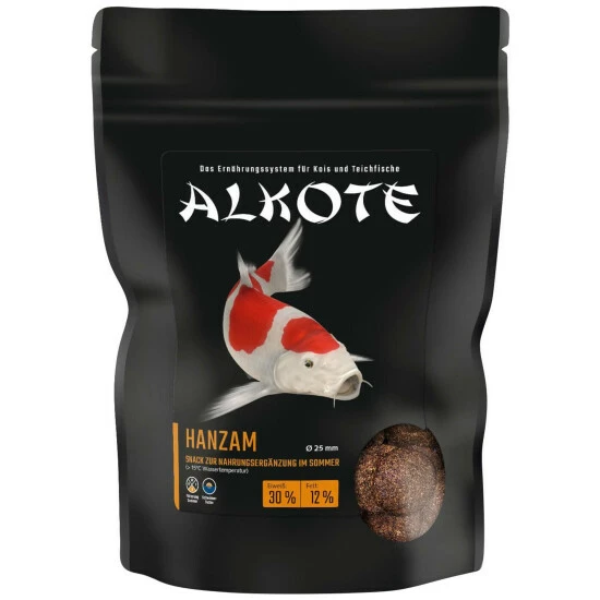 - Fütterungshinweise: ALKOTE Hanzam Koi Snack ist ein großer, schwimmfähiger Taler mit fester Wasserstabilität. Durch den hohen Anteil an Fischmehl und Fischöl ist er besonders schmackhaft und eignet sich ideal für die Handfütterung Ihrer Kois.