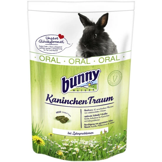 - Fütterungshinweise: Den Napf mit KaninchenTraum ORAL füllen und leer fressen lassen, erst dann wieder auffüllen. Täglich hochwertiges bunny Heu und frisches, handwarmes Wasser geben.