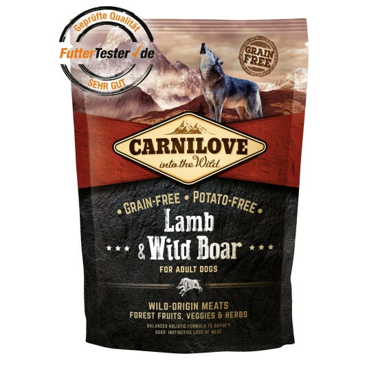 - Fütterungshinweise: Trocken oder mit lauwarmem Wasser angefeuchtet verfüttern. Die tägliche Futtermenge Ihres Hundes kann je nach den Bedingungen seiner Umgebung und je nach Alter, Größe und physischer Aktivität variieren. Die empfohlene tägliche Futtermenge ist der nachfolgenden Fütterungstabelle zu entnehmen. Mischen Sie bei der erstmaligen Fütterung von Carnilove kleinere Mengen mit dem bisherigen Futter und erhöhen Sie den Anteil von Carnilove schrittweise. Ausreichend frisches Wasser sollte stets für Ihren Hund bereitstehen.Gewicht des Hundes (kg) → Tagesration (g)5 kg →75g10 kg → 125g15 kg → 170g20 kg → 210g25 kg → 250g30 kg → 280g40 kg → 350g50 kg → 410g60 kg → 470g70 kg → 530g80 kg → 590g90 kg → 640g