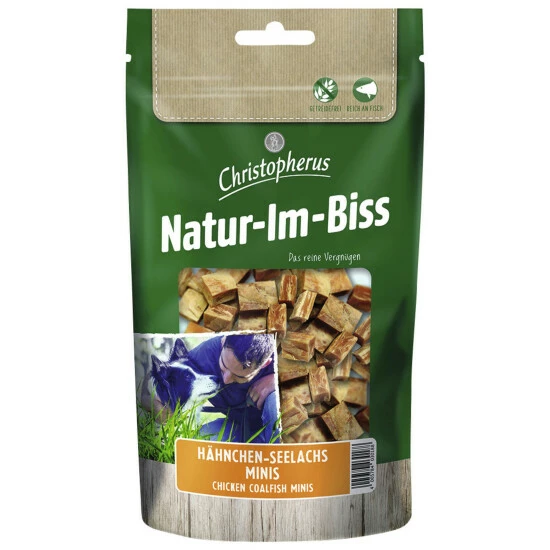 - Zusammensetzung: Hühnerfleisch 72%, Seelachs 23%, Kartoffelstärke, Glycerin