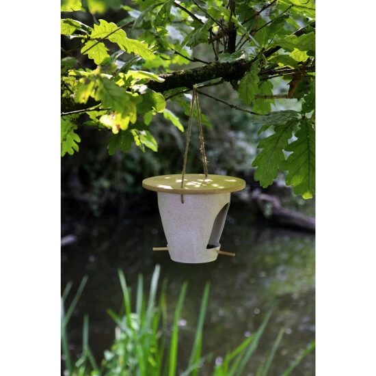 - Nutzungshinweise: Für eine möglichst lange Haltbarkeit sollte der Futterspender vor der Witterung geschützt platziert werden. Die Futterstelle sollte in mindestens 1 m Höhe und für Hauskatzen unerreichbar aufgehängt werden.