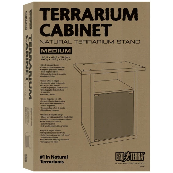 Eigenschaften: Modernes & elegantes Design, Stabile und widerstandsfähige Konstruktion, Glastüren mit magnetischen Verschlüssen, Flasch verpackt und einfach zusammenzubauen, In 3 verschiedenen Größen, Schwarze Glastüren, Mit Haltestiften für Exo Terra Terrarien