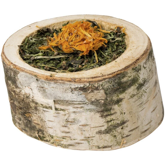 - Zusammensetzung: Birkenholz gefüllt mit Spitzwegerich, Ringelblumenblüte, Hibiskusblüten, Löwenzahn, Brennnessel, Minze, Petersilie