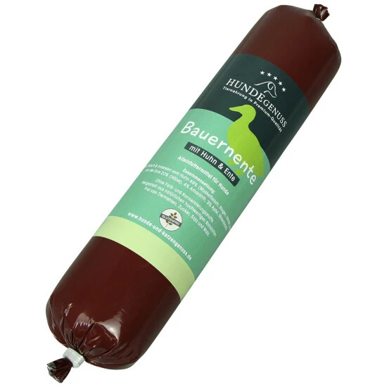 - Zusammensetzung: Muskelfleisch, Magen, Herzen, Leber vom Huhn; Hälse von der Ente; Amaranth; Apfel; Mineralstoffe