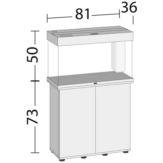 Ausstattung: JUWEL Aquarium, passender Unterschrank im SBX-Design, MultiLux LED Einsatzleuchte, Bioflow Innenfilter-System, biologische Filtermedien, flüsterleise Eccoflow Pumpe, leistungsstarke AquaHeat Regelheizer