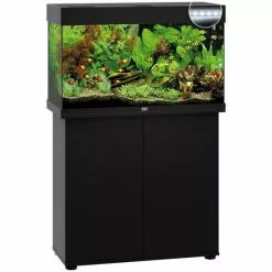 Ausstattung: JUWEL Aquarium, passender Unterschrank im SBX-Design, MultiLux LED Einsatzleuchte, Bioflow Innenfilter-System, biologische Filtermedien, flüsterleise Eccoflow Pumpe, leistungsstarke AquaHeat Regelheizer