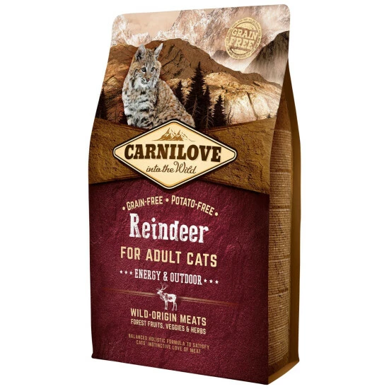- Zusammensetzung: Rentiermehl (28%), Wildschweinmehl (28%), gelbe Erbsen (18%), Hühnerfett (konserviert mit Tocopherolen, 13%), Hühnerleber (4%), Tapiokastärke (2%), Lachsöl (2%), Äpfel (1%), Karotten (1%), Leinsamen (1%), Kichererbsen (1%), hydrolysierte Krustentierschalen (Glukosaminquelle, 0,026%), Knorpelextrakt (Chondroitinquelle, 0,016%), Bierhefe (Mannan-Oligosacchariden-Quelle, 0,016%), Chicorée (Fruktooligosaccharidenquelle, 0,012%), Yucca Schidigera (0,01%), Algen (0,01%), Flohsamen (0,01%), Thymian (0,01%), Rosmarin (0,01%), Oregano (0,01%), Preiselbeeren (0,0008%), Heidelbeeren (0,0008%), Himbeeren (0,0008%).
