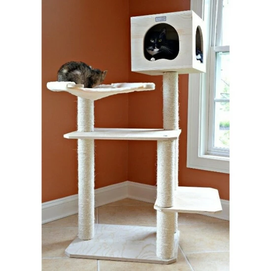 - Lieferumfang: Kratzbaum mit Höhle, Hängematte und Liegeplatten