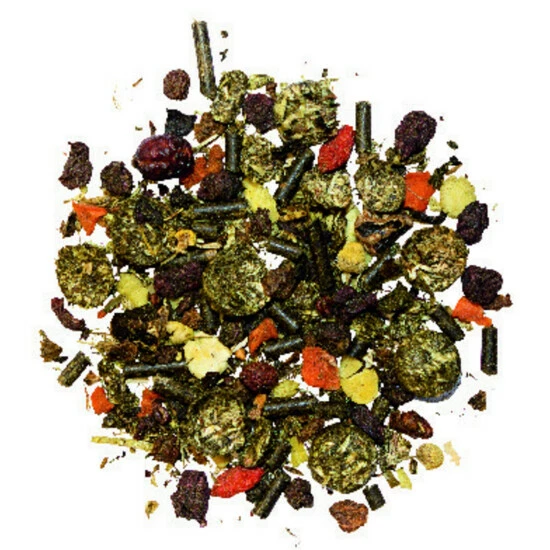 - Zusammensetzung: Gras hochtemperaturgetrocknet, Traubentrockentrester,Sojabohnenflocken, Bierhefe, Obsttrestergetrocknet (Aronia), Chia-Presskuchen, Karottengetrocknet, Hagebutten, Pflanzenöl (Leinöl,Mariendistelöl), Bierhefe-Zellwände (SaccharomycesCervisiae), Weißdornbeeren, Kräuter (Thymian,Fenchel, Kreuzkümmel, Kamillenblüten),Johannisbrotschoten getrocknet, Seealgenmehl,Zichorienpülpe,Gojibeeren, Monocalciumphosphat,Methylsulfonylmethan (MSM), Natriumchlorid,Magnesiumoxid