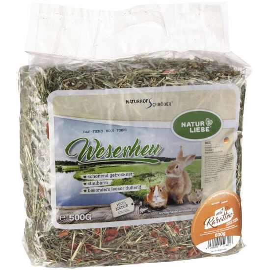 - Zusammensetzung: Heu 95%, Karottenscheiben getrocknet 5%
