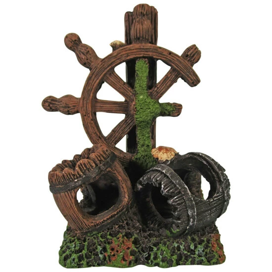 Orbit Aquariendekoration, Schiffsrad, Polyresin, Braun