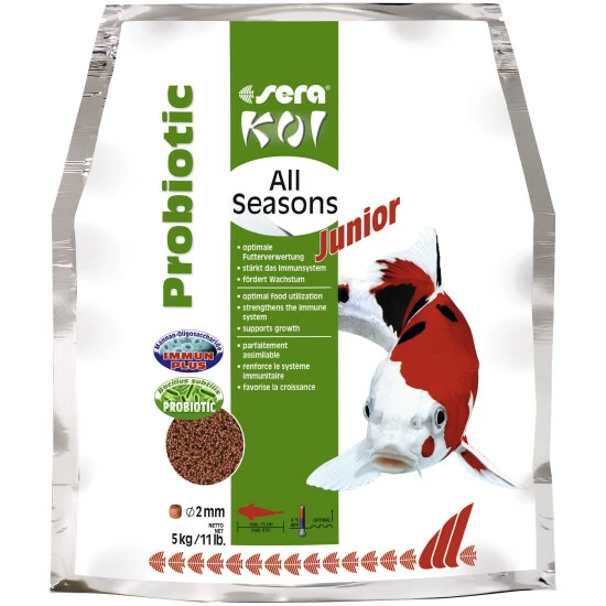 - Zusammensetzung: Fischmehl, Maisstärke, Weizenmehl, Weizenkeime, Spirulina, Weizenkleber, Fischöl (davon 49 % Omega-Fettsäuren), Brauereihefe, Mannan-Oligosaccharide (0,4 %), Krill, Grünlippmuschel, Gammarus, Brennnessel, Kräuter, Luzerne, Petersilie, Knoblauch, Seealgen, Paprika, Haematococcus-Algen, Spinat, Karotten.