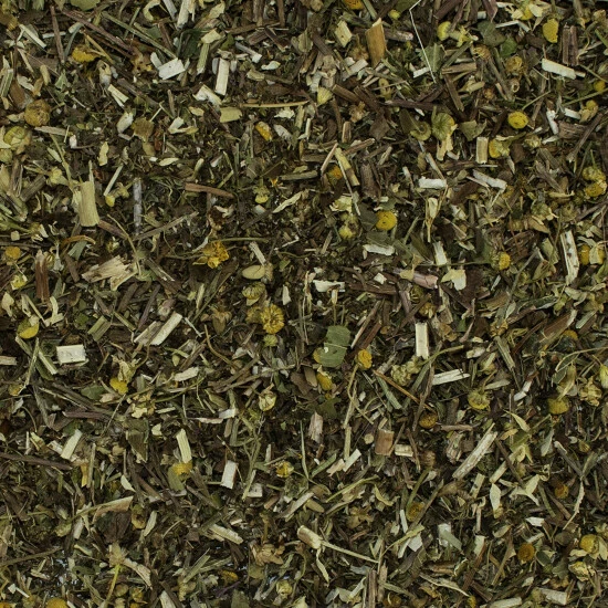 - Zusammensetzung: 30 % Goldrute, 25 % Eisenkraut, 20 % Baldrianwurzel, 15 % Melissen-kraut, 10 % Kamille.