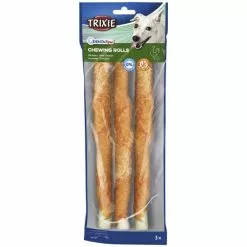 - Zusammensetzung: Rinderhaut, Hühnerfleisch (28%), Maisstärke, Glycerin, Sorbitol, Mineralstoffe