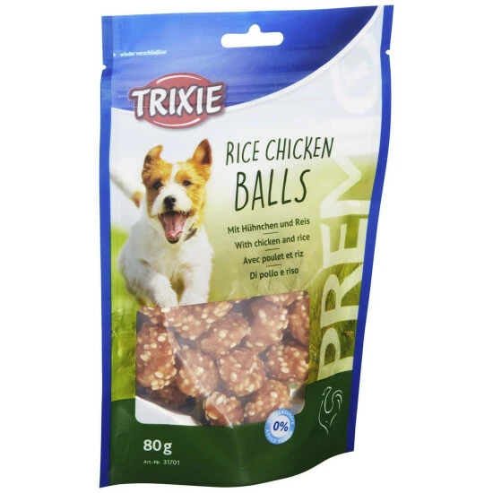 - Zusammensetzung: 77 % Hühnchenfleisch, 15 % Reis, Weizenstärke, Glycerin, Sorbitol