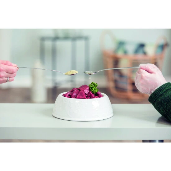 - Fütterungshinweise: 2–3 cm der Paste pro Tag. Für eine dauerhafte Fütterung geeignet.