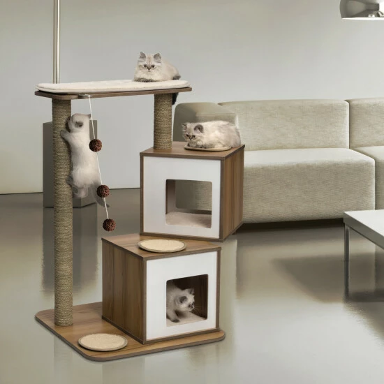 - Lieferumfang: Vesper Double mit Kissen, Kratzmatten, Kugelspielzeug, Kratzsäulen