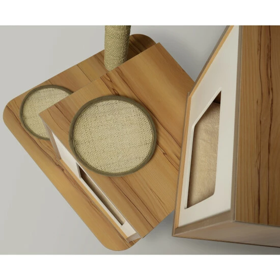- Ausstattung: Aus hochwertigem MDF mit Laminatüberzug in Walnussoptik,Kissen mit Memo-Foam-Effekt, Kratzmatten aus Sisal,
