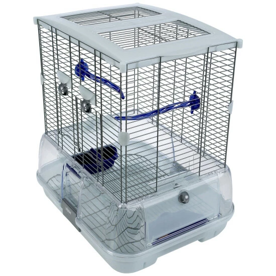 - Ausstattung: Innenzubehör in drei verschiedenen Farben; Tiefes Bodenteil mit Schmutzfangvorrichtung, damit Schmutz und Abfall im Inneren des Vogelheims verbleiben