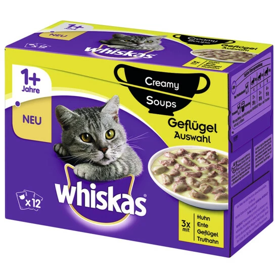 - Fütterungshinweise: Eine Katze ( 3kg) benötigt 4 Portionsbeutel pro Tag oder 2 Portionsbeutel + 20 g WHISKAS®Trockennahrung pro Tag. Eine Katze (4kg) benötigt 5 Portionsbeutel pro Tag oder 3 Portionsbeutel +20 g WHISKAS® Trockennahrung pro Tag. Eine Katze (5kg) benötigt 6 Portionsbeutel pro Tag oder 4Portionsbeutel + 15 g WHISKAS® Trockennahrung pro Tag.44kcal / 85g. Passen Sie die Futtermenge derAktivität und der allgemeinen körperlichen Verfassung Ihrer Katze an. Wasser sollte jederzeitverfügbar sein.